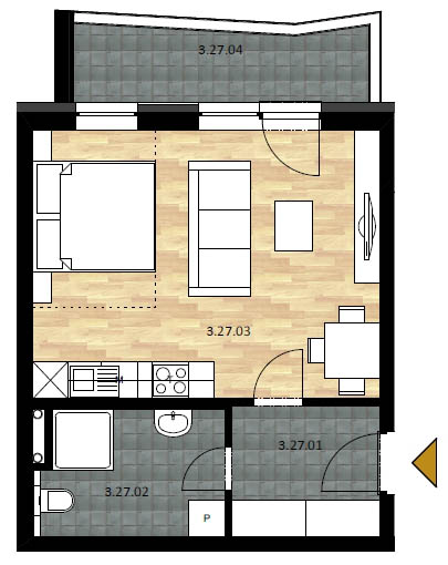 Na výber je varianta 2-izbového malometrážneho bytu, ako aj varianta priestranného 1-izbového bytu.